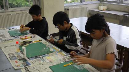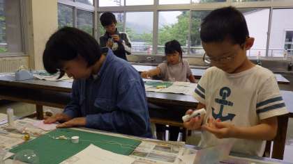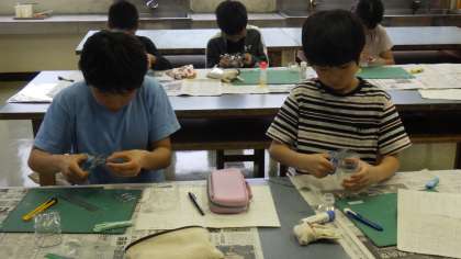 今年度の第1回目のいろいろクラブは、ビーズ風鈴作りです。ペットボトルを切って、色付けしたり、ひもにビーズや鈴を通して飾りを付けたりしました。