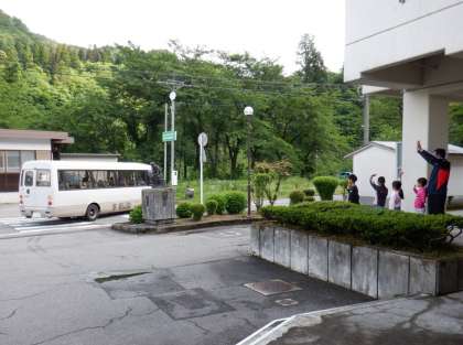 宿泊学習に出発する上級生を見送った1・2年生。今日から2日間は、2年生がリーダーとなり、学校生活を送ります。