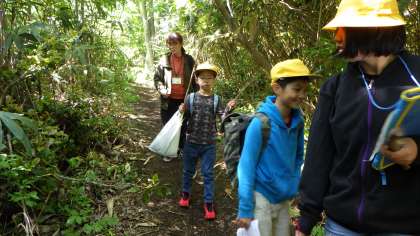 午後は、森に入って、森の宝さがしビンゴゲームを行いました。