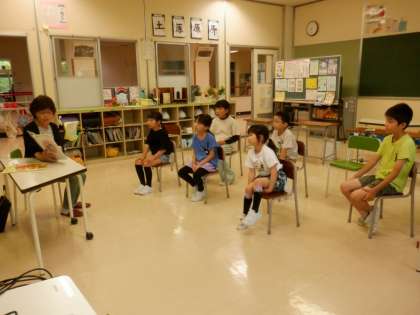 今日は、1〜4年生合同で読み聞かせをしていただきました。