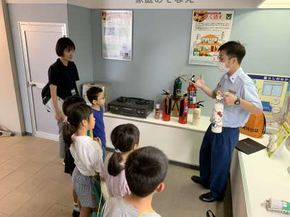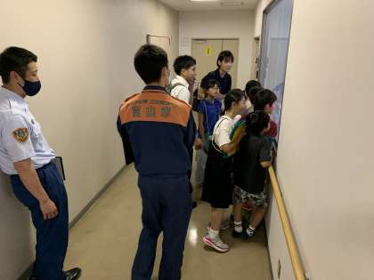 富山市消防局に行きました。司令室では実際に電話をかけて、かかってきた場所を確認する様子を見せていただきました。