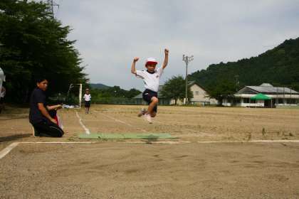 走り幅跳び。低学年の空中姿勢もよくなってきました。