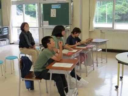 5・6年生は、総合的な学習の時間でした。昨日散策に行った「鳥越山」で発見したことや、感想を伝え合いました。