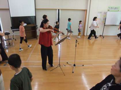 「体験コーナー」も設けてくださいました。バイオリンを弾くまねをしてみたり、演奏に合わせて体を動かしたりしながら、音を楽しみました。