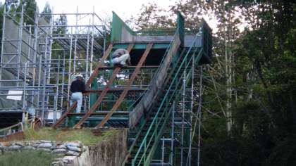 老朽化のため、使用を控えていたジャンプ台の修繕工事が始まりました。