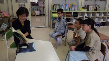 今月も読み聞かせをしていただきました。今月は、「おかのうえのギリス」と「うちゅうはきみのすぐそばに」の2冊を読んでいただきました。普段はあまりふれることのない世界のお話に興味津々の子供たちでした。