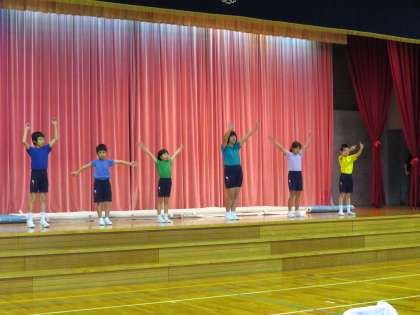 赤団、白団に分かれてダンスを披露しました。6年生を中心に振り付けを考えました。懐かしい昭和のヒット曲に合わせて元気に踊りました!!