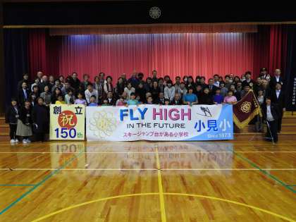最後に150周年を記念して、児童・職員・来場してくださった皆さん全員で、記念撮影をしました。この笑顔がいつまでも続きますように。