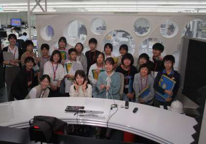 次にチューリップテレビに行きました。ニュース番組の編集について教えていただいたり、アナウンサーの方がニュースを読むところを見せていただいたりしました。