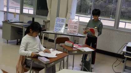 国語科で、「世界にほこる和紙」を読み、文の中心となる語を見つける学習をしています。今日は、筆者が伝えたいことを文章から読み取り、3人で確かめました。