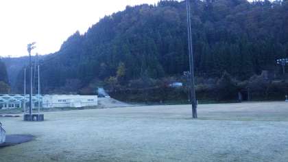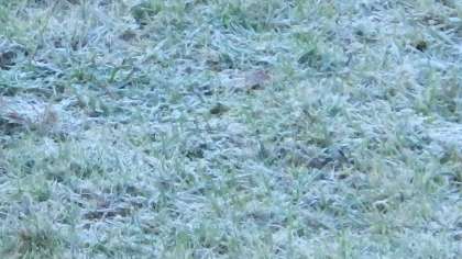今朝はぐんと冷えて、芝生の上に白いものが・・・・白く輝く霜がおりました。
