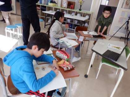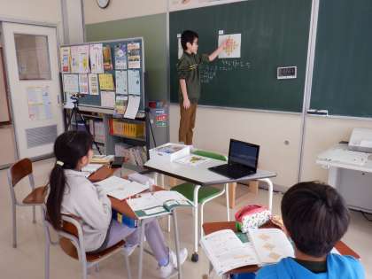 算数科で、まとまりに着目して、図に示された〇の数を求める学習をしました。図に表したまとまりを式に表せるよう一生懸命に考えをつくりあげました。