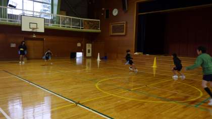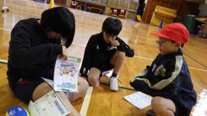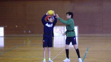 体育科の学習で、フラッグフットボールに取り組んでいます。今日は、2回目の試合を行いました。パスで攻めるかランで攻めるかチームの仲間と相談しながらゲームを組み立てます。相手の意表をつく作戦が決まり、見事に得点につなげることができました。