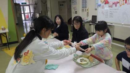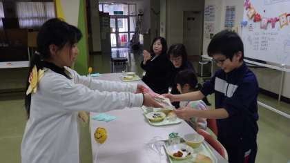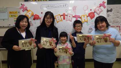 元気もりもり委員会の主催で、誕生日会食を行いました。誕生者のみなさんは、手描きのイラストが入った手提げバックのプレゼントに、にっこり笑顔でした。