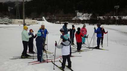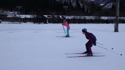 小見小学校には、まだ少し雪が残っています。朝はクロスカントリースキーの練習を行いました。子供たちで練習メニューを決め、みんなで楽しく取り組みます。