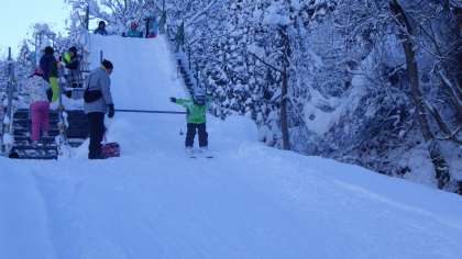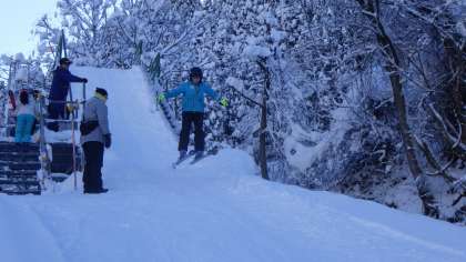 改修が終わった新しいジャンプ台での練習が始まっています。今年からは中間位置からもスタートすることができ、より段階的な練習が可能になりました。