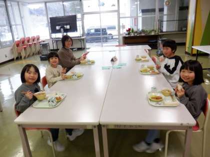 なかよくがんばっています 1(1・2年生) 公開日 2024/01/31 更新日 2024/01/31 1・2年生 スキー交歓会へ出発した上級生を見送った1・2年生。いつもは上級生がしている給食の献立紹介を分担して行いました。白馬北小ではどんな給食かな?と想像しながら、おいしい給食をいただきました。