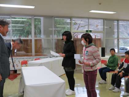 北陸銀行の支店長さんと本校の卒業生である高尾さんより、ぜひ「楽校」づくりに役立ててほしいとお言葉をいただきました。