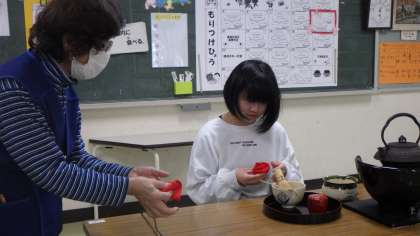 2月21日(水)の小見っ子ふれあい茶会に向けてお点前、お運びの練習をしました。細かくポイントを確認しながら、真剣に練習することができました。