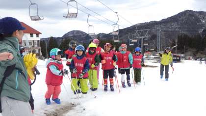 なんと!強風のためリフトが動きません。スタート位置まで歩いて登ります。