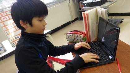 3年生は、国語科の学習で1年間で作った作品の中でお気に入りの作品を紹介する文章を書く学習をしています。4年生は、地震や台風等の自然災害から身を守る方法を調べてまとめる学習をしています。今回の学習では、1時間目に活動の内容やねらいをたしかめた後、9時間分の学習の計画を立てて取り組むことにしました。「もう少し調べた方がよいから、少し計画を直そう」と、計画を修正しながら取り組もうとする様子が見られます。