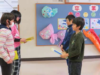 児童会の引継ぎ式が行われました。6年生から下級生へと、小見っ子リーダーのバトンが受け継がれていきます。