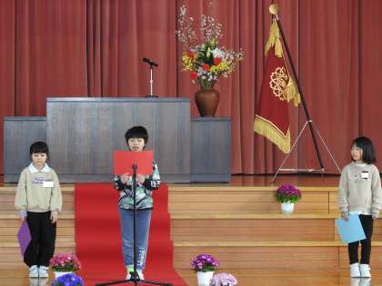 一年間のがんばりや次の学年でがんばりたいことを1・2年生が発表しました。