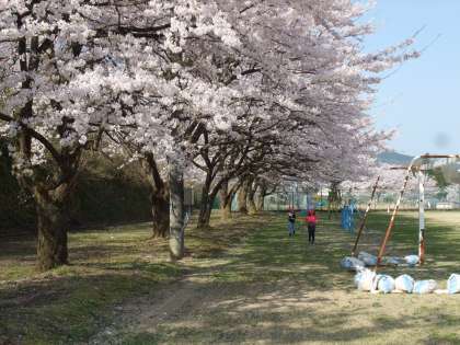 朝のトレーニング、桜トンネルを気持ちよさそうに走る小見っ子です。