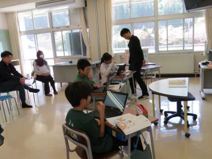 5・6年生は国語科「名前を使って、自己しょうかい」です。クロームブックを活用して紹介文を作りました。