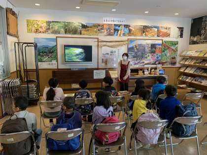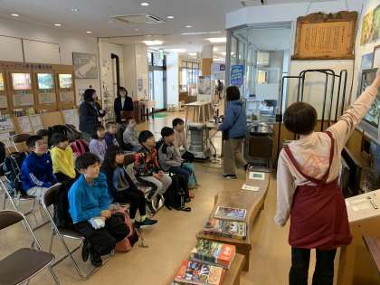 和紙の里に到着しました。和紙づくりの学習をしています。