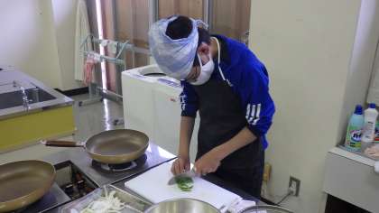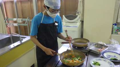 6年生は、家庭科の調理実習で朝食のおかず(いろどりいため・青菜いため・スクランブルエッグ)を作りました。野菜を同じ大きさにそろえるのが大変でしたが、安全に気を付けながら短時間で切り終えました。火が通りすぎないように、手際よく野菜などを炒めました。