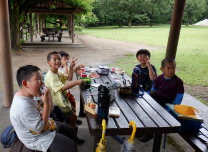 お弁当タイムも、2つのグループに分かれて仲よく食べました。