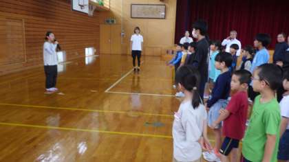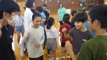 今日は、福沢小学校で、初めての「夏」のスポーツ交流会を行いました。体育館では、じゃんけんをしたり、ペアで数合わせをしたりして福沢小学校のみなさんと楽しく交流しました。