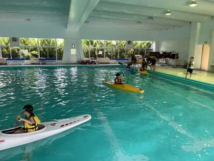 パドルを使ってカヌーを進める練習です。