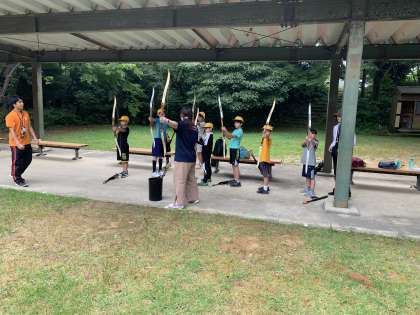 アーチェリー体験が始まりました。