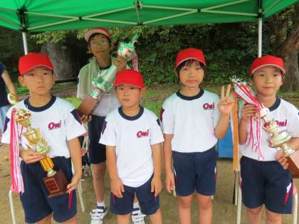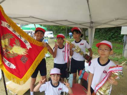運動会終了後、各団で解団式を行いました。これまで頑張ってきたことを振り返り、団リーダーからの話を聞いたりトロフィーを回し合ったりしました。