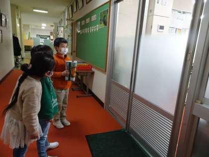 もし、自分たちが困ったら・・・。先生たちのいる職員室と、けがや体調が悪くなったときにお世話になる保健室を2年生が紹介してくれました。初めての場所に、目を丸くしながら話を聞く1年生でした。学校には、まだまだいろいろな場所があるので、学校探検が楽しみですね。
