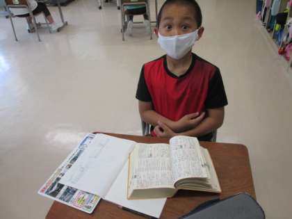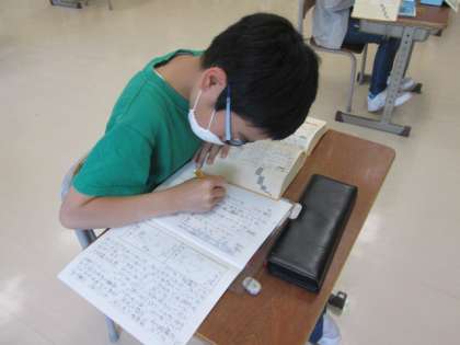 漢字の成り立ちを辞書で調べ、ノートにまとめました。