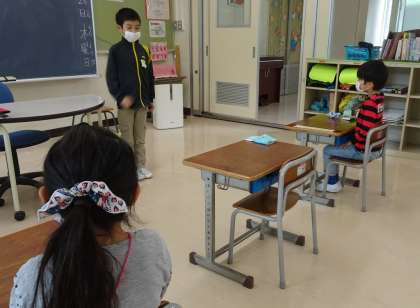 2年生は、毎日1年生にたくさんのことを教えてくれています。朝の会では、1年生の様子をよく見て、大きな声でゆっくり進行しています。