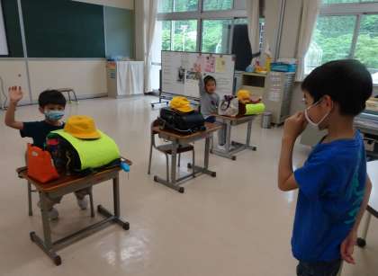 今日の帰りの会では、全校体育の話が出ました。走り幅跳びとソフトボールに取り組みましたが、とてもうまくいったようで、3人とも笑顔で話していました。