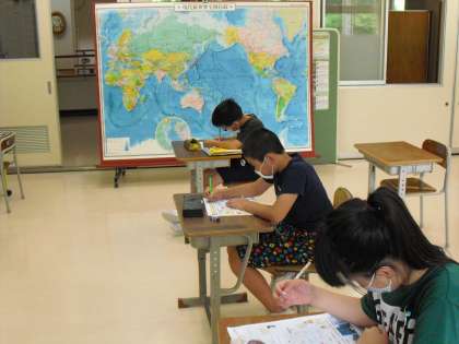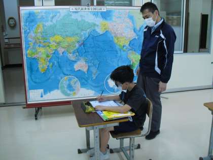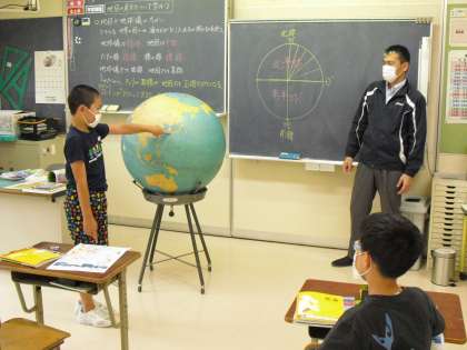 地図の見方を学習しました。地球儀と地図を比べそれぞれの特徴を考えました。