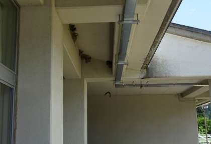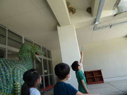 そうっと近づいて (1・2年生) 公開日 2020/06/11 更新日 2020/06/11 1・2年生 西ホールの軒下に、ツバメが巣をつくっています。ツバメをおどかさないように、ツバメがいないときに近くまで行ってみました。そろそろ巣は完成のようです。この後のことを楽しみにしている1・2年生です。