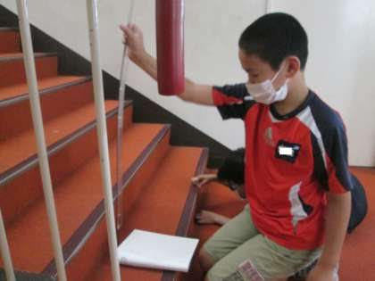 比例の考え方を生かして、小学校の1階から2階までの高さを調べました。