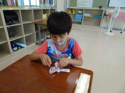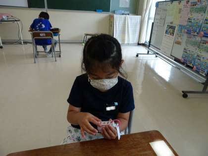 算数でたし算の学習を続けている1年生。計算カードを使ってたし算の練習に取り組んでいます。おうちでも練習を続けて、たし算名人を目指しましょう。