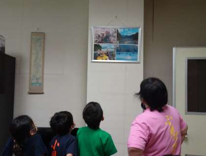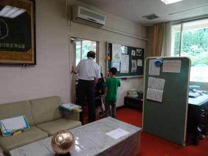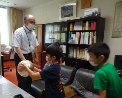校長室にあるいろいろなものも見せていただきました。「校長室のドアは、どこにつながっているの?」という質問に、ドアを開けて向こう側を見せてもらいました。