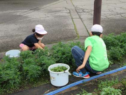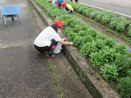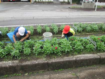 校門前花壇の草取り等をしました。草花が元気に育って、きれいな花を咲かせてくれることを期待しています