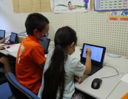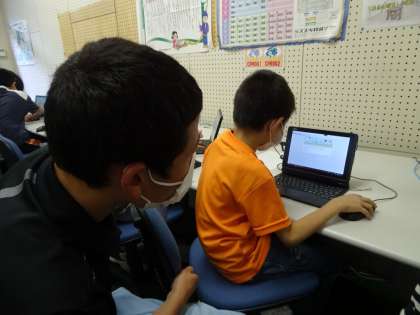 パソコンの使い方や、アンケートへの答え方を6年生にていねいに教えてもらいながら、操作しました。