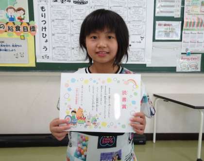 読書ビンゴを達成した3年生です。次のビンゴカードには、どんな本が登場するのか楽しみですね。
