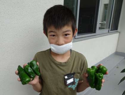 ピーマンがとれ続けています。今回は、11個も収穫できました。