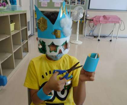 先週に引き続き、制作しました。仮面の他に、スカートやベルト、腕輪や指輪も作りました。